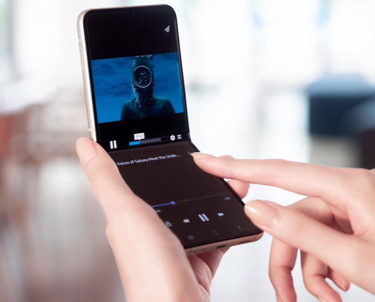As part of its foldability, the Z Flip 3 5G offers some cool innovations. If you partially open the phone to watch a video, for example, a Flex Mode panel kicks in to display the video on the top half of the screen and controls to play the video in the bottom half.