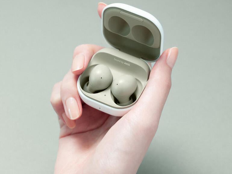 The Galaxy Buds 2 uses dynamic two-way speakers for crisper and clearer sound with a deep base. An Active Noise Cancellation feature tries to block unwanted noise, though you can adjust this setting if you need to hear the sounds around you. And when you’re on a phone call, a new machine learning technology filters out background noises.